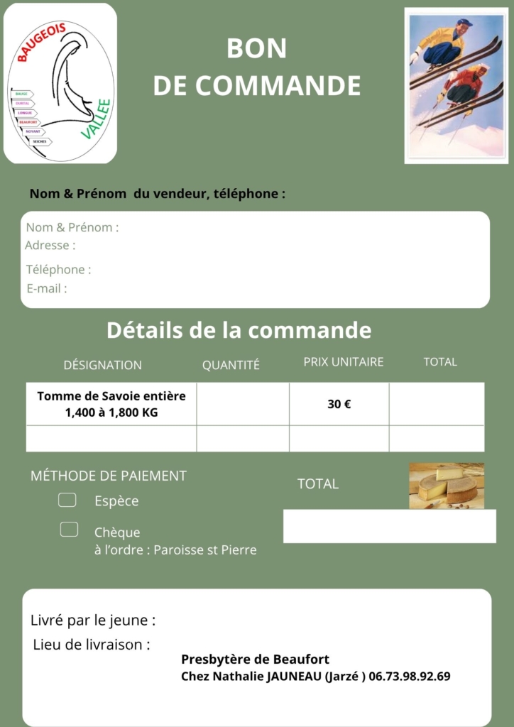 Les commandes sont à déposer à la maison paroissiale de Beaufort avant le samedi 31 janvier 2026.