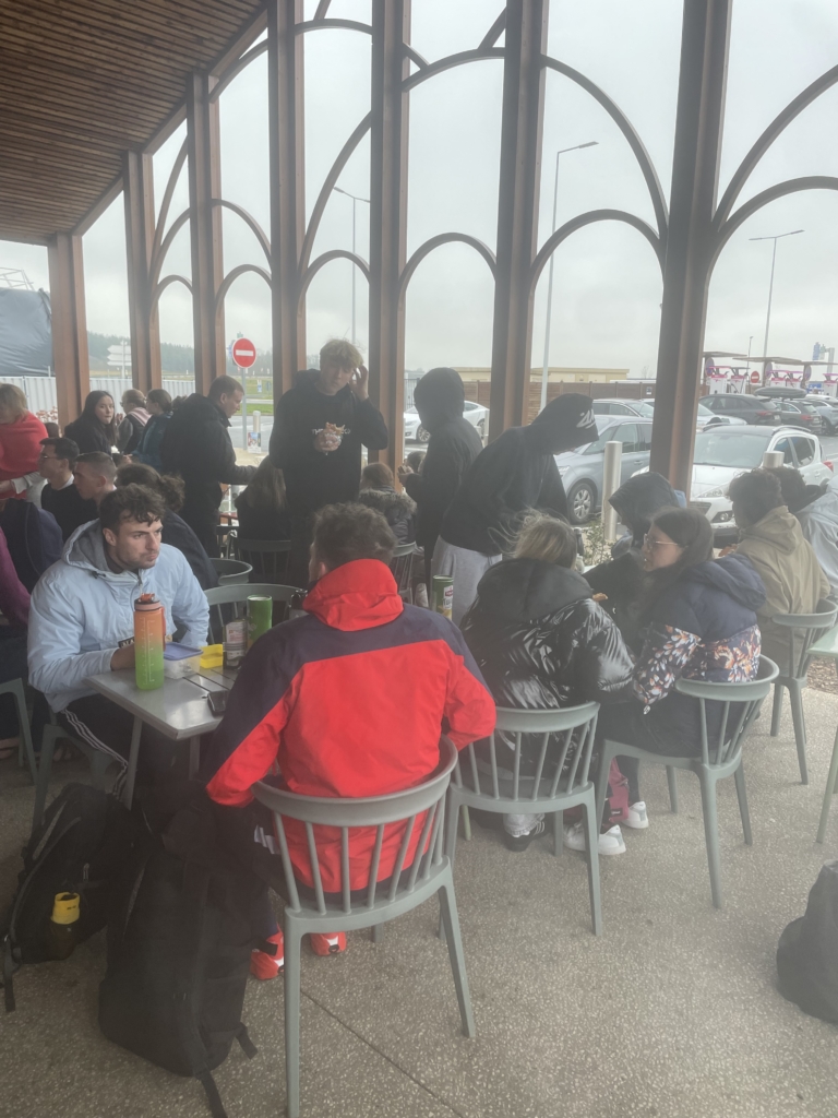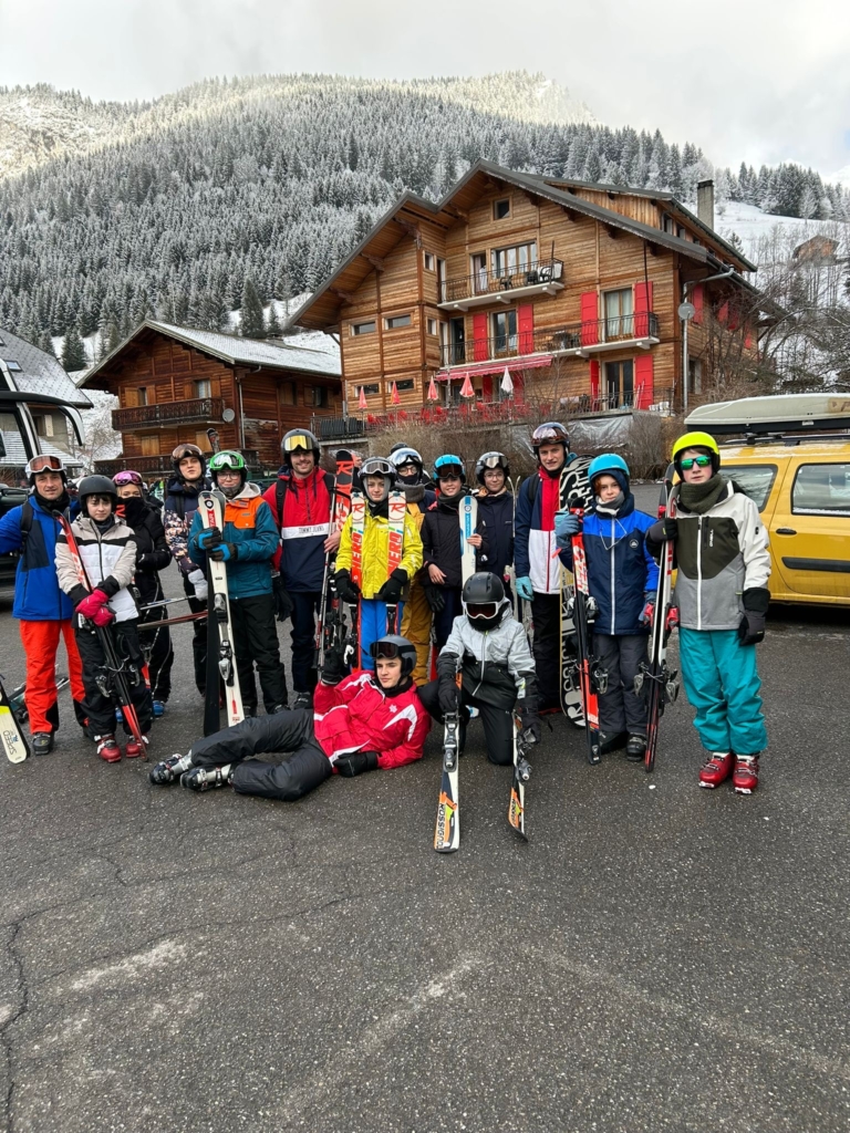 Ce midi, pur hasard, nous avons eu la chance de partager nos sandwiches avec nos collègues de l’autre camp ski Bible des Ponts-de-Cé dans un froid glacial.