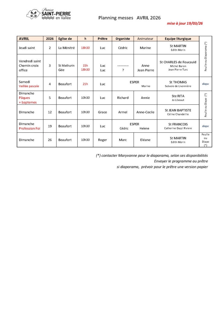 Accueil > Planning Equipes liturgiques